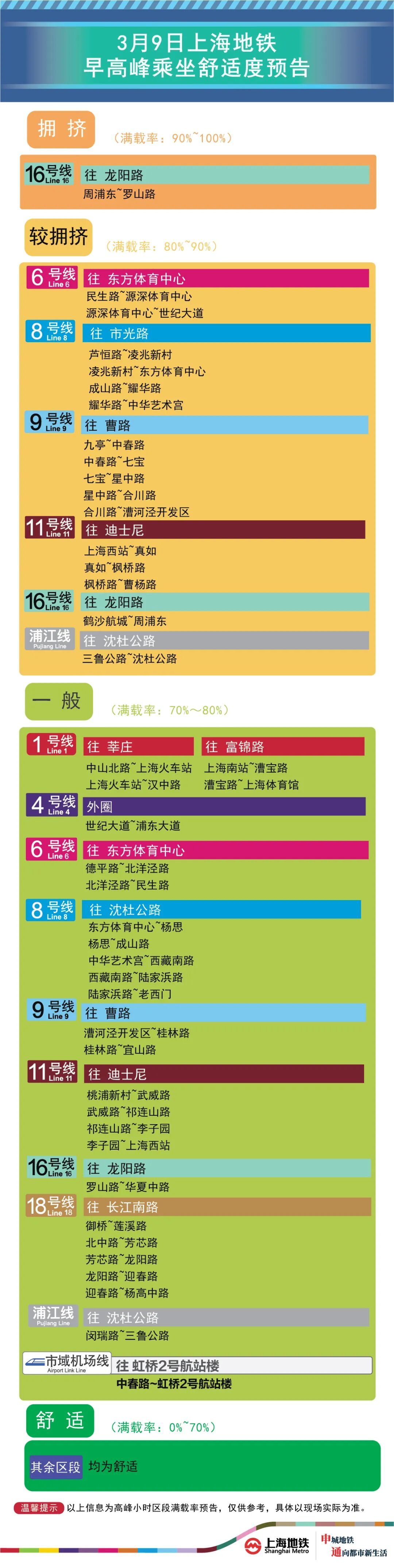 为提升上海地铁早高峰期间出行服务水平,提升乘客乘坐体验,上海地铁向乘客提供乘坐舒适度预告,方便乘客提