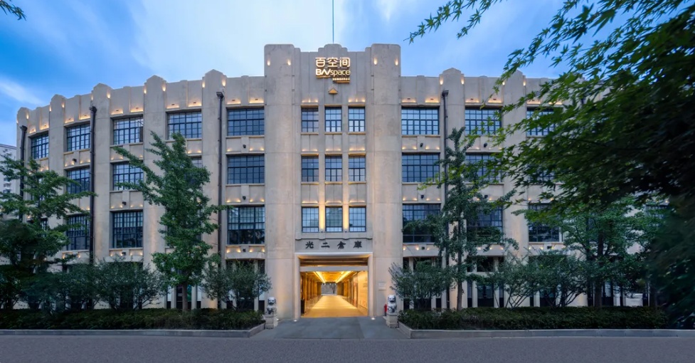 位于光复路195号的百空间光二仓库,建于1932年,原为交通银行仓库,由第一代中国建筑师代表庄俊设计、新森泰营造厂建造。2015年,该建筑被公布为上海市优秀历史建筑,其工业风骨与滨水格局得以完整保留。在“修旧如故”的原则下,完整保留了裸露的混凝土梁柱与斑驳的墙面肌理,并通过适应性改造,充分释放了内部空间潜力。如今,这里已集聚国际知名餐饮、生活方式品牌、展示型办公业态与文化艺术展览,在烟火气息与艺术氛围的交融中,这座百年仓库焕发出新的生机。