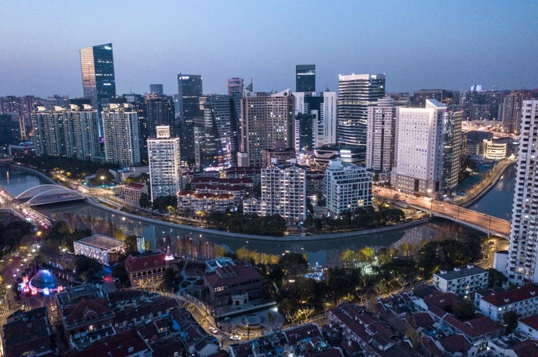苏州河沿岸夜景俯瞰