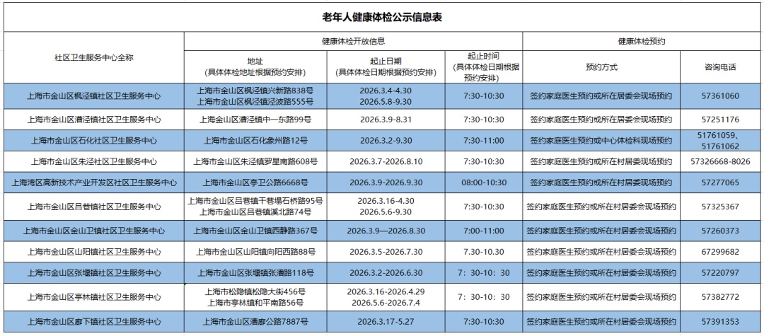 @金山60岁以上居民,免费健康体检全攻略请查收!