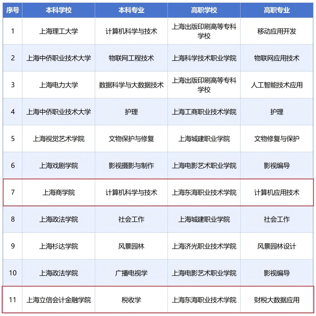 市教委介绍,2026年上海增设上海理工大学与上海出版印刷高等专科学校联合申报的计算机科学与技术等11个专科高等职业教育—应用本科教育贯通培养模式专业。位于闵行的上海东海职业技术学院榜上有名。相关本科高校在招生中须安排专科层次高等学校毕业生招生计划。一起来看名单↓