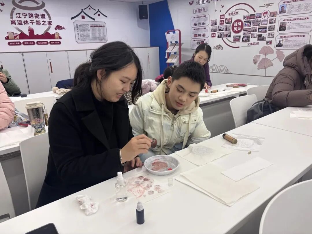 大家认真学习铺纸、调墨、按压等步骤,在亲手创作传拓作品的过程中,感受海派非遗的古朴韵味与匠心之美,厚植文化自信,努力成为中华优秀传统文化的传承者。