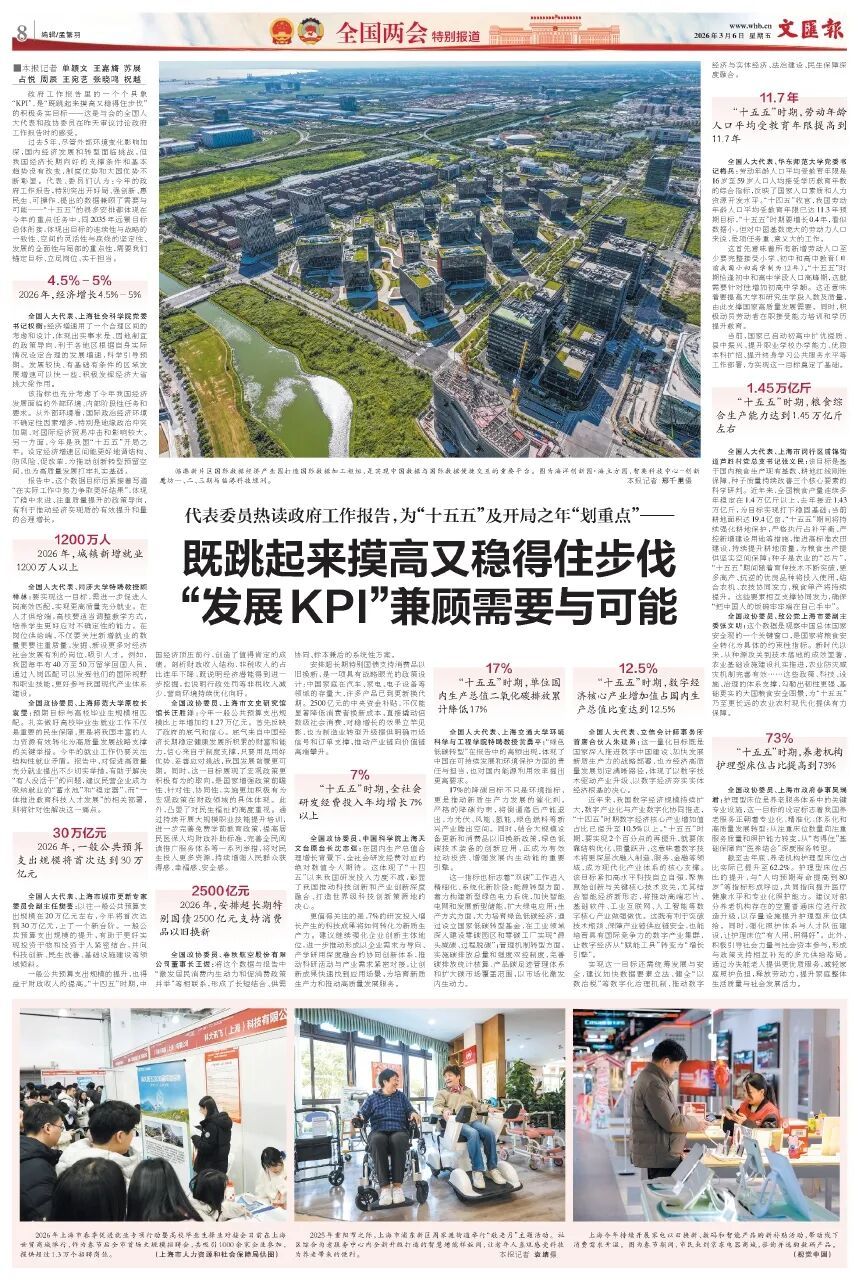 政府工作报告里的一个个具象“KPI”,是“既跳起来摸高又稳得住步伐”的积极务实目标——这是与会的全国人大代表和政协委员在昨天审议讨论政府工作报告时的感受。
