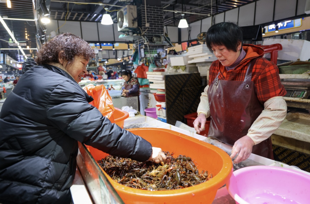谈及今年的小龙虾行情,万安里市场摊主丁彩平直言:“今年三钱到五钱的小龙虾每斤30元左右,去年同期同款规格卖到35元;五钱到八钱的小龙虾,去年刚上市每斤45元,今年只要40元出头,每斤差价5元左右,整体价格更亲民。”摊主还表示,今年小龙虾货源充足、品质上乘,加上价格实惠,销量比往年同期高出不少。