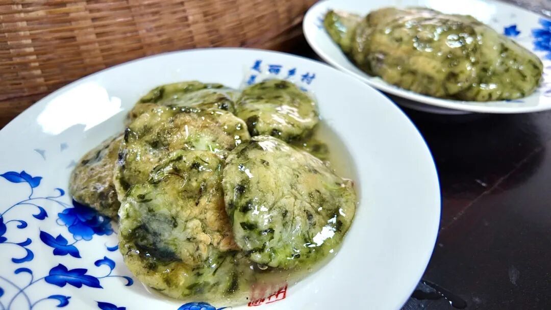 在柘林,芥菜塌饼是刻在柘林人记忆里的春季限定美味,方言称之为“ga”菜塌饼,又藏着“太太平平”的美好寓意,是春天里最朴素也最动人的家常滋味。