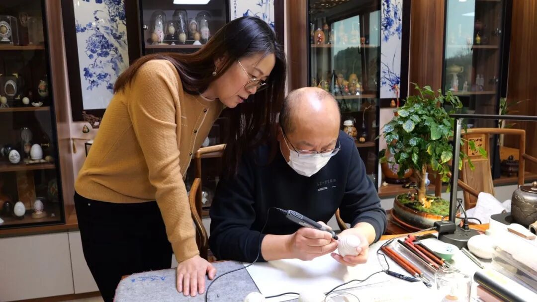 如今,这对夫妇并不满足于闭门创作。周航卫在安亭老街创办了工作室,每个季度都会组织面向市民的参观体验活动,让更多人有机会近距离接触这门蛋雕艺术,感受静心与匠心的力量。周滨的作品也多次走出家门举办个展,让更多人看到,在毫厘之间,可以承载怎样的大千世界。