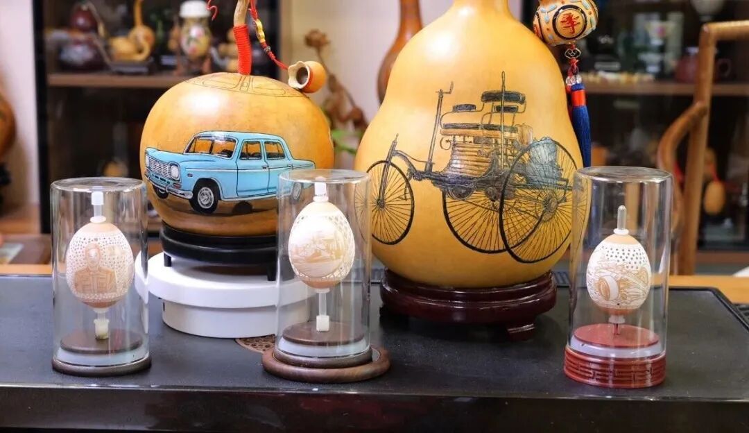 如今,周航卫和周滨已经尝试采用过鸡蛋、鹅蛋、鸸鹋蛋等各种蛋壳作为原材料,运用阳刻、阴刻、浮雕、镂空等多种方式,创作出一枚枚造型独特、生动细腻的蛋雕作品,在毫厘之间承载大千世界。在他们的家里,如梦如画的山水风景、形态各异的花鸟鱼虫、惟妙惟肖的京剧脸谱......形态各异的蛋雕、葫芦雕工艺品琳琅满目,精美图案活灵活现。