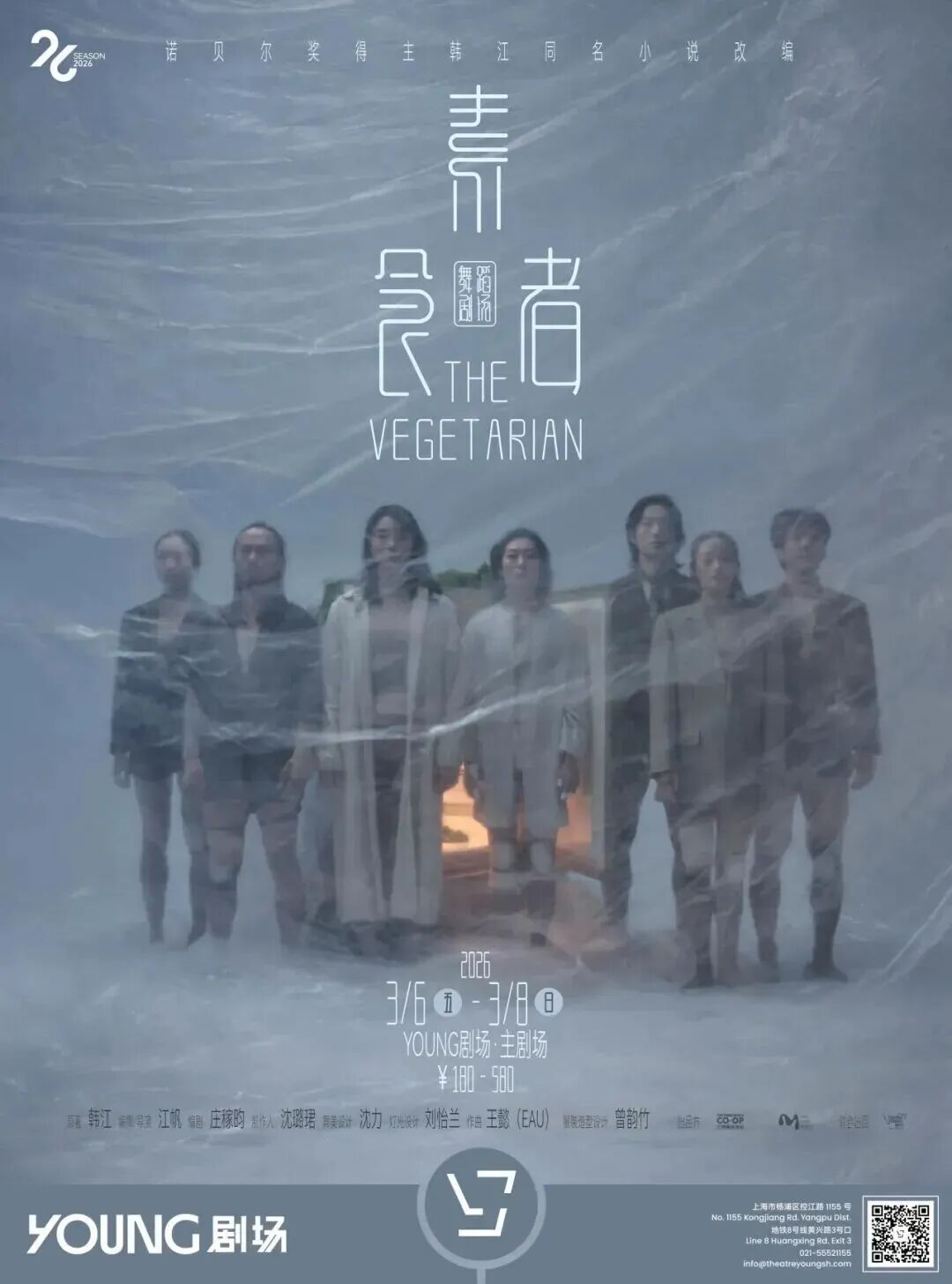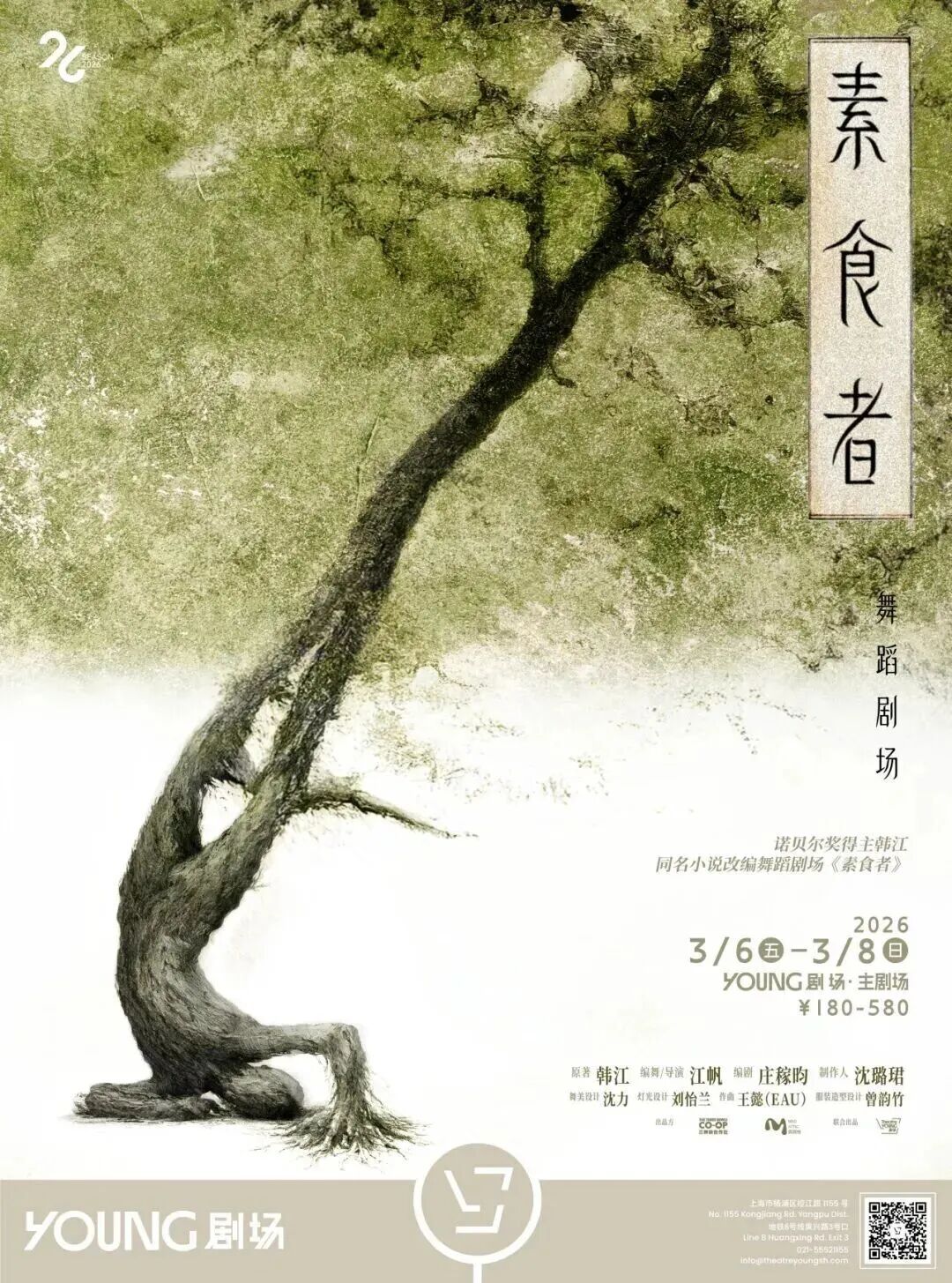 3月6日晚,根据原著官方授权改编,由三种碗合作社、疯阁楼出品,YOUNG剧场联合出品的舞蹈剧场《素食者》在YOUNG剧场迎来全球首演。这是该文学作品以舞蹈剧场的形式首次被搬上舞台,也正式拉开了YOUNG剧场2026春夏演出季的大幕。