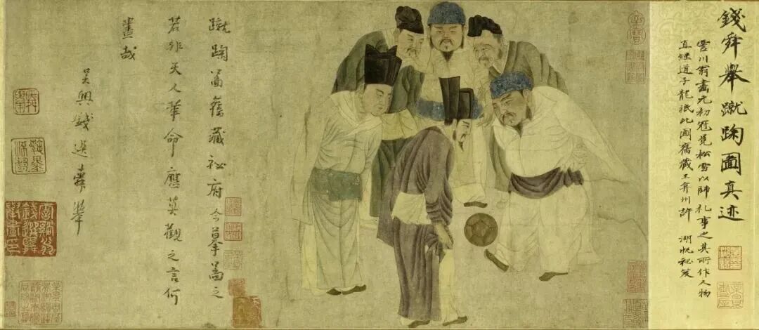 唐朝时,由于唐太宗、唐玄宗都喜爱蹴鞠,所以这项运动在宫中和民众间继续上行下效。宋朝时,宋太祖赵匡胤也是一位“铁杆球迷”,这从现存的《宋太祖蹴鞠图》中便可以看出。而在《宋史·太宗本纪》中则有记载:“太平兴国五年,三月戊子,会亲王、宰相、淮海国王及从臣,蹴鞠大明殿。”
