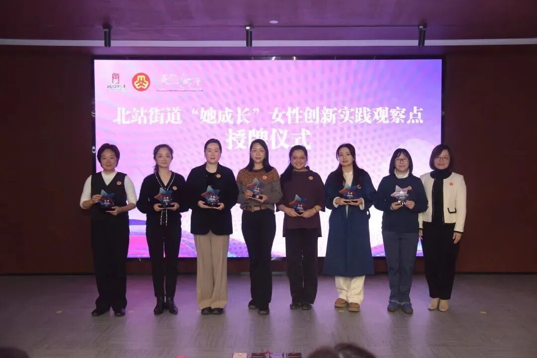 为挖掘可复制、可推广的女性创新模式,北站街道还设立了“她成长”女性创新实践观察点。上海苏河湾万象天地、上海静安大悦城、卫材(中国)药业、国浩律师(上海)事务所、蔻驰贸易(上海)有限公司、上海静安区宜立方社区服务中心、上海苏河湾重影书局等7家单位成为首批观察点。这些点位将以实践为基础、以赋能为核心,通过典型案例增强女性自信,讲好“她成长”故事。