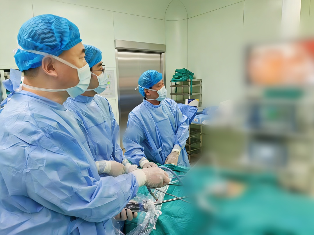 3月初,陈老伯再次入院接受腰疝修补术。在麻醉科、心内科的紧密协作下,团队为他实施了“单孔腹腔镜腰疝修补术”。