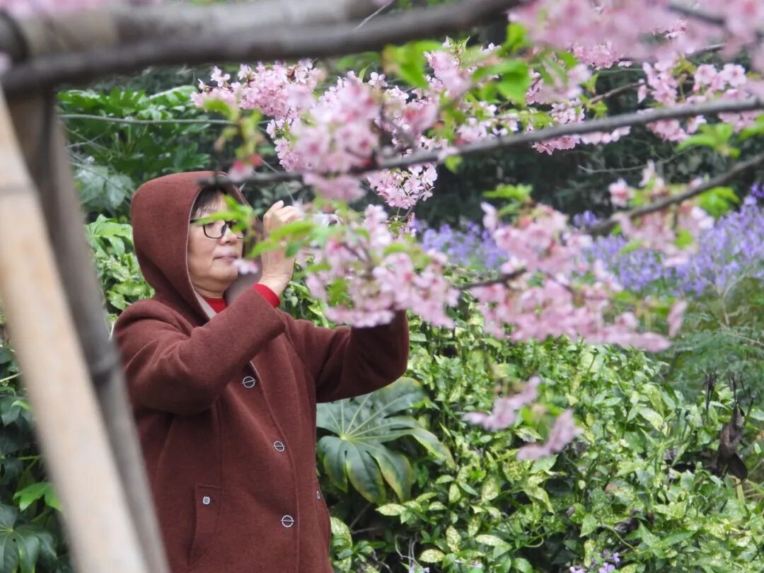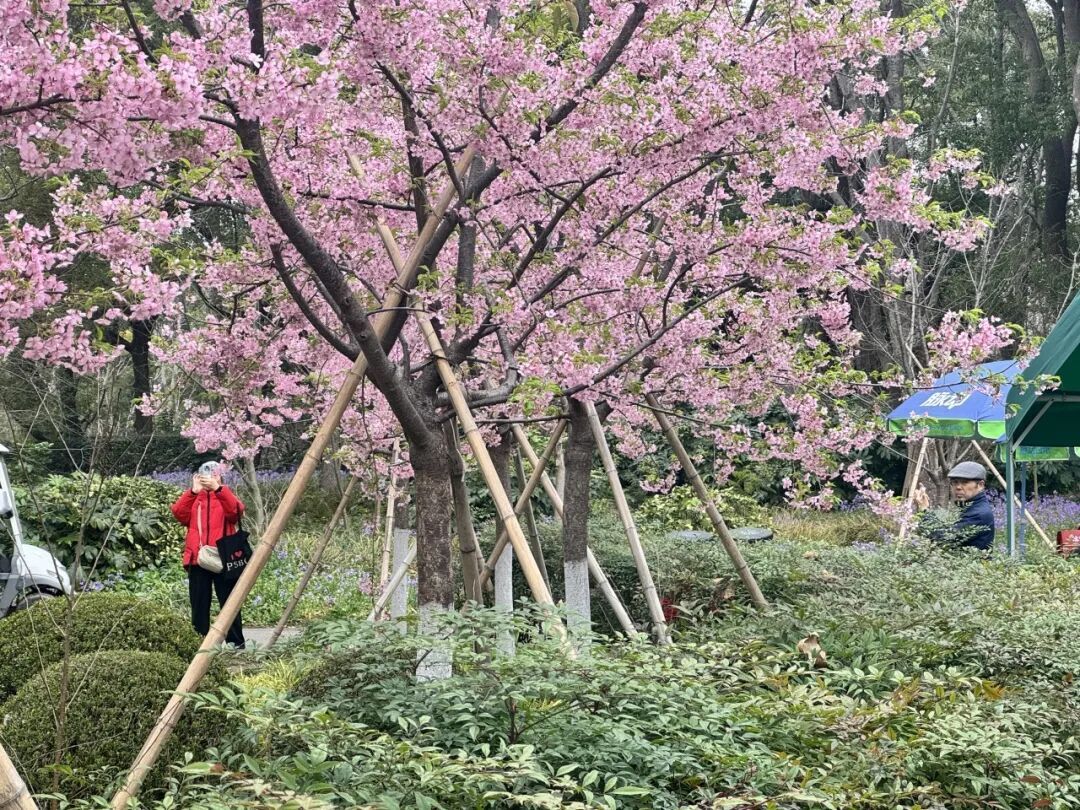 树下,已有了驻足凝望的身影。市民张阿姨正举着手机寻找最佳角度。“往年也来,今年感觉花开得早。”张阿姨笑着说,脸上映着花影,“看着这些粉嘟嘟的花,心里一下就亮堂了,感觉冬天那些阴沉全被赶跑了。我每年都要来和这第一波春色合个影,这是个念想。”