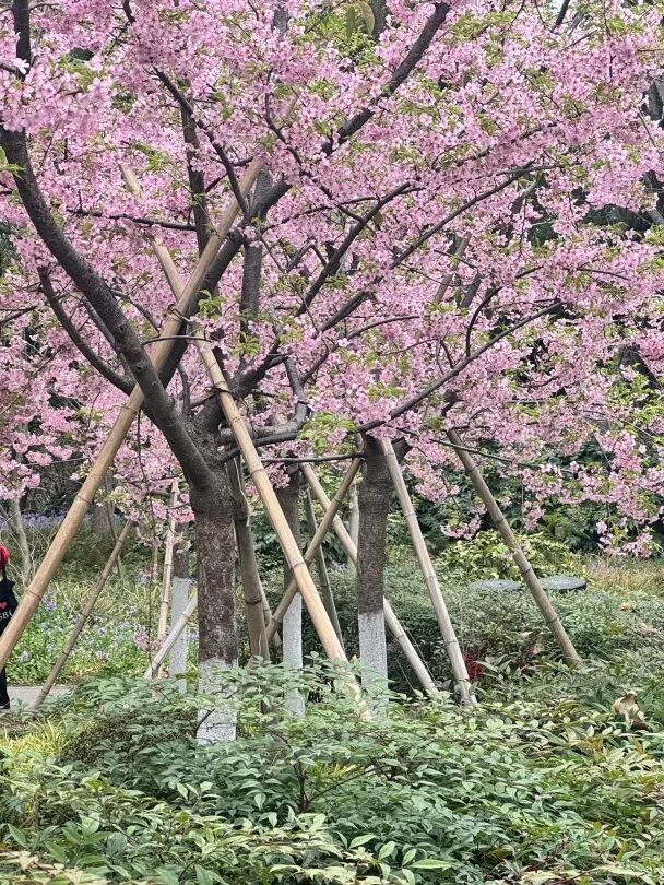 共青森林公园园容科助理工程师黎梦萍介绍:河津樱是早樱品种中花势最为繁盛的品种之一,以其花期早、花量大、颜色粉嫩而闻名。除了河津樱,接下来染井吉野樱和晚樱也会陆续开放。