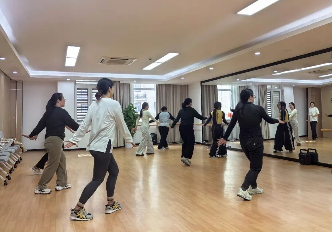 三楼舞蹈房里,瘦身燃脂舞课程火热进行。9位女性学员对着镜子,跟着音乐节奏完成一组组动作。虽然不少人动作还略显生疏,但每个人都跳得格外投入。一节课下来,大家满头大汗,互相笑着交流“明天腿肯定要酸了”。