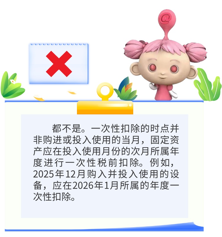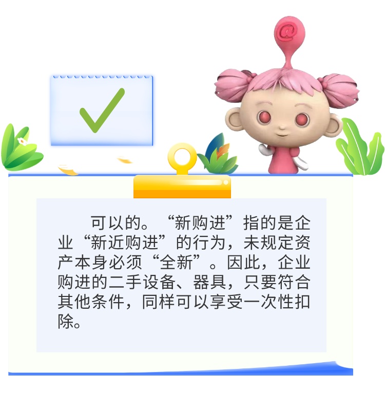 2018年1月1日至2027年12月31日期间,企业新购进的、单位价值不超过500万元的设备、器具(指除房屋、建筑物以外的固定资产),允许一次性计入当期成本费用,在计算应纳税所得额时扣除,不再分年度计算折旧。这一政策普惠性强,但也常常容易用错。这次我们特地整理了一些在实务中会碰到的问题,帮助判断固定资产怎么适用一次性税前扣除,快来学习吧!