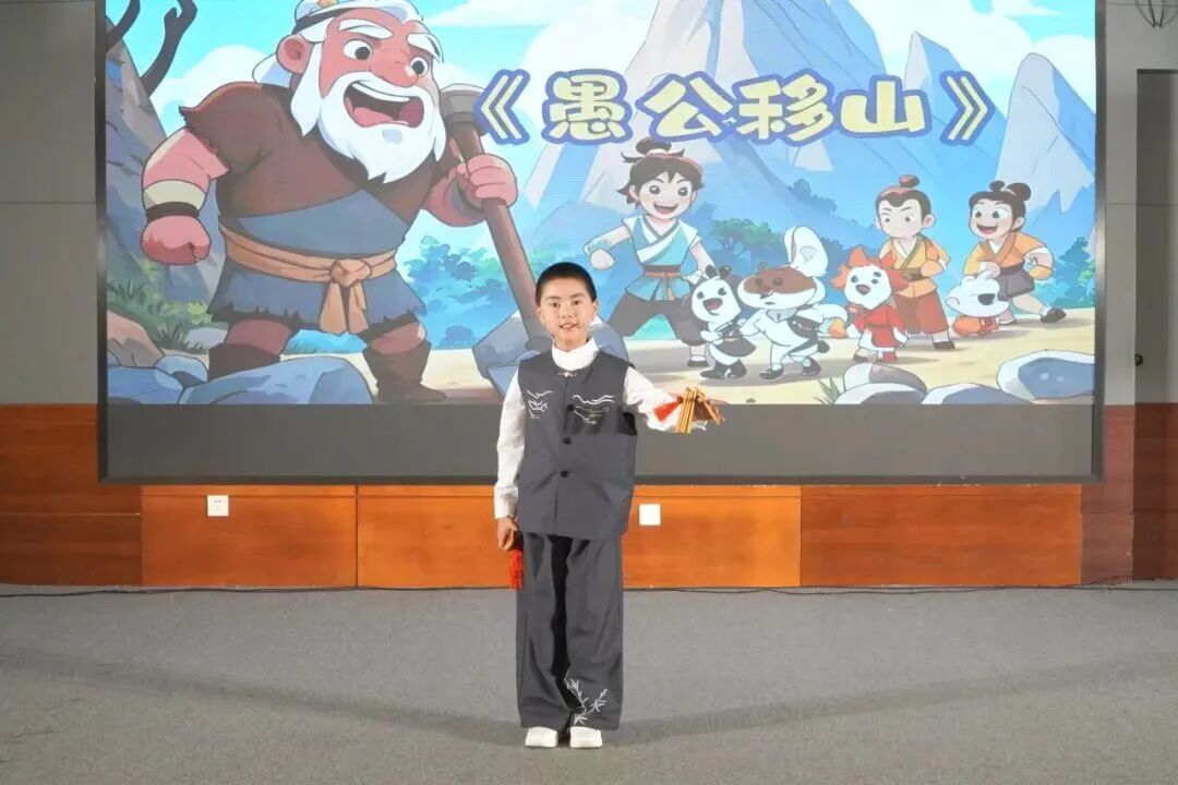 如何让传统曲艺更受孩子喜爱?团队指导老师李文博有自己的想法:“传统曲艺底蕴深厚,但单纯的传统段子对孩子来说可能有些枯燥。”为此,老师们创新思路,将传统艺术与儿童故事相结合,精心挑选《愚公移山》《闹天宫》等孩子们耳熟能详的故事,改编成快板、相声段子,同时鼓励孩子们在动作设计、表演桥段中融入自己的创意,让经典段子焕发新活力。