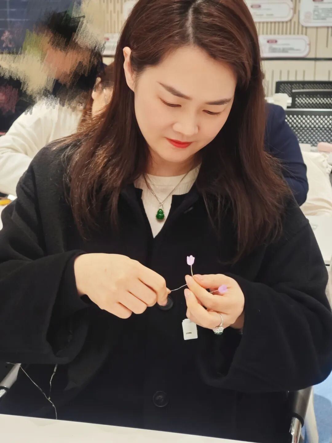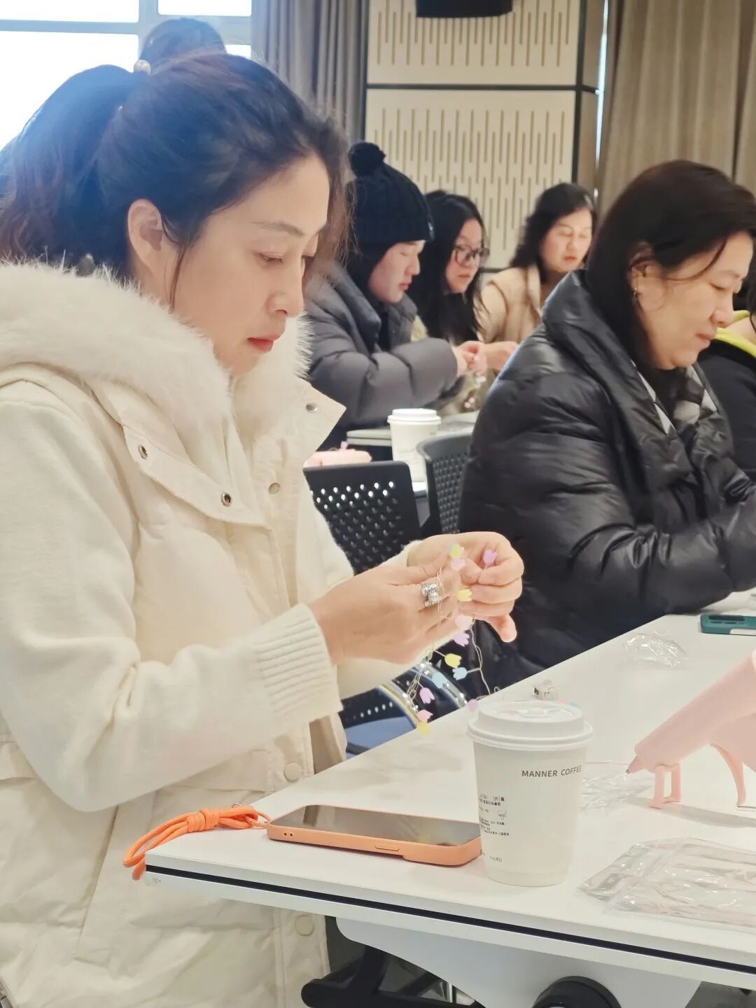 随着一个个零部件被巧妙组合,一盏盏独具特色的深邃夜灯逐渐成型,柔和的灯光透过精致的铃兰灯饰,在室内晕开温馨又浪漫的光芒。大家互相展示着自己的作品,分享着创作的乐趣,现场欢声笑语不断,暖意融融。