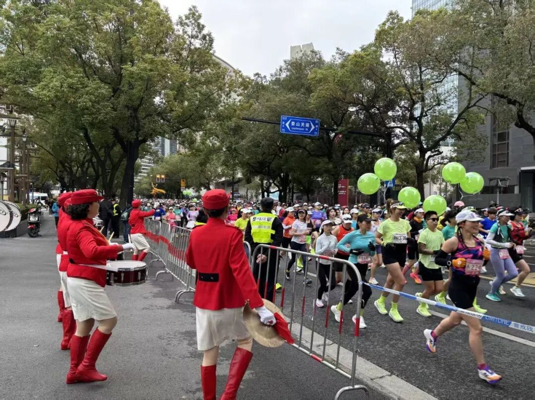 每当选手们跑过这片区域,锣鼓声便愈发激昂,为跑者们击鼓助威。许多选手受到感染,面带微笑,向热情的鼓手们挥手致意,现场气氛被推向高潮。