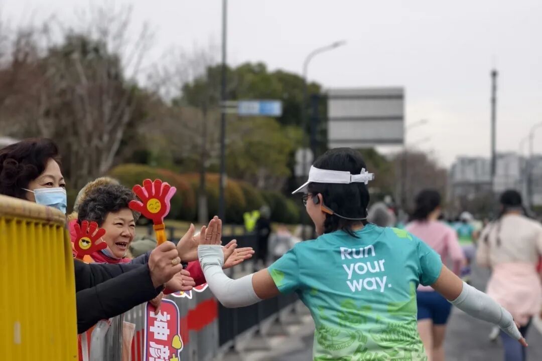 “今年是马年,这次又是女子半马,我们就想到了穿上人偶服为跑者加油,心情特别激动,每位参赛者都值得敬佩。”北新泾志愿者高声说道。