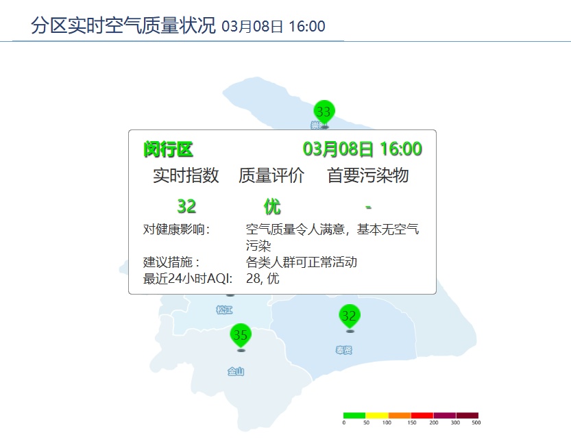 闵行区AQI为32,优。