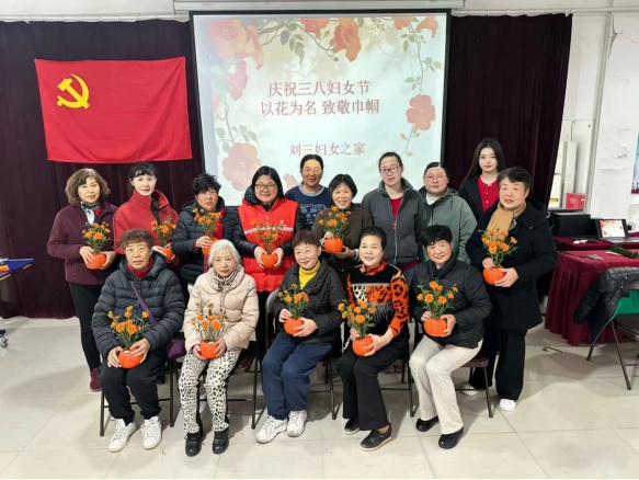与此同时,刘三社区妇女之家开展了“以花为名 致敬巾帼”手工花卉制作活动。在轻松融洽的氛围中,大家有条不紊地进行搭配、造型,共赴一场指尖上的美丽之约。一盆盆“生机盎然”的手工花卉作品,映衬着大家脸上满满的成就感与幸福感。
