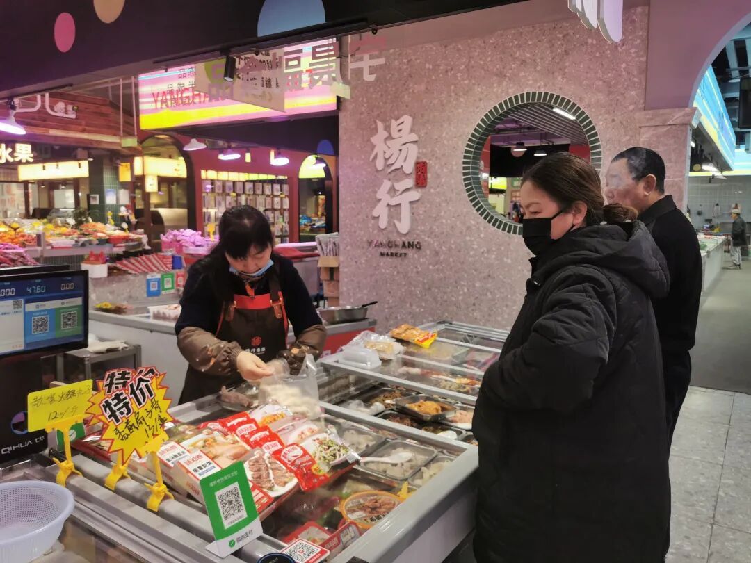 “我们设立了平价菜专柜,把最大的实惠留给街坊邻居。”杨行市集物业管理负责人表示,市场内还有专人负责农产品检测和食品安全溯源,设立农产品快速检测室,每日对蔬果、肉类等进行抽检,并将结果公示。消费者可通过溯源系统查询商品信息,实现“来源可追、去向可查、责任可究”。从源头把控,让大家买得安心,吃得健康!