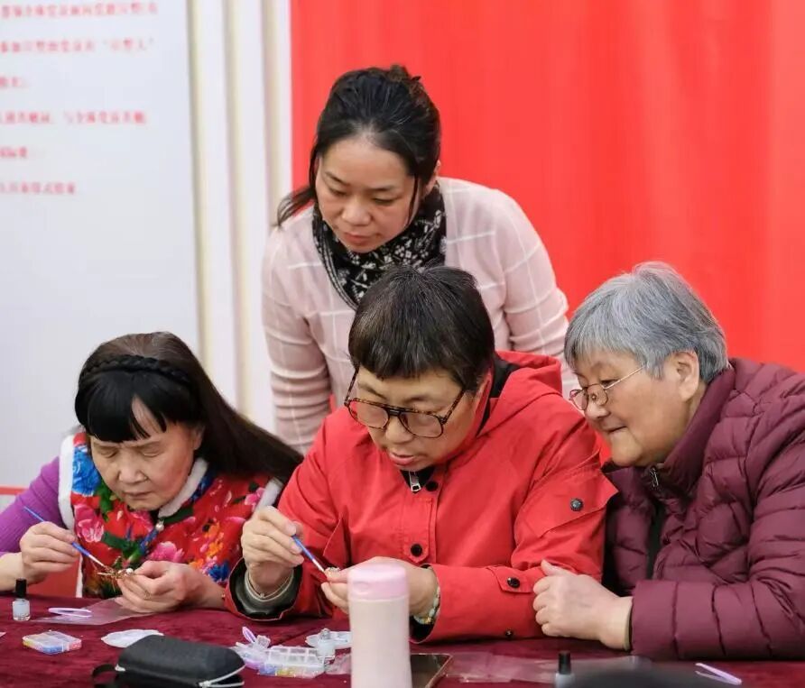 同步进行的手工制作区同样热闹非凡。在社区手工达人的指导下,妇女代表们巧手翻飞,将丝网花、串珠手链等材料变成了一件件精美的作品。“这朵花要送给楼里的独居老人,让她们也感受节日的温暖。”居民王阿姨笑着说。