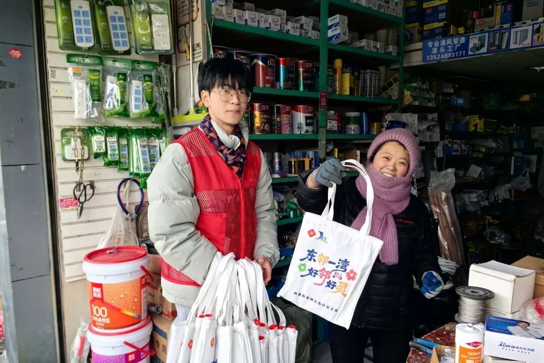 走访期间,大学生们重点排查消防器材与燃气管道安全,发放安全手册,现场督促隐患整改。同时,逐一核查店面名称、营业执照、商户人员构成、春节营业安排等信息,并送上新春福袋。