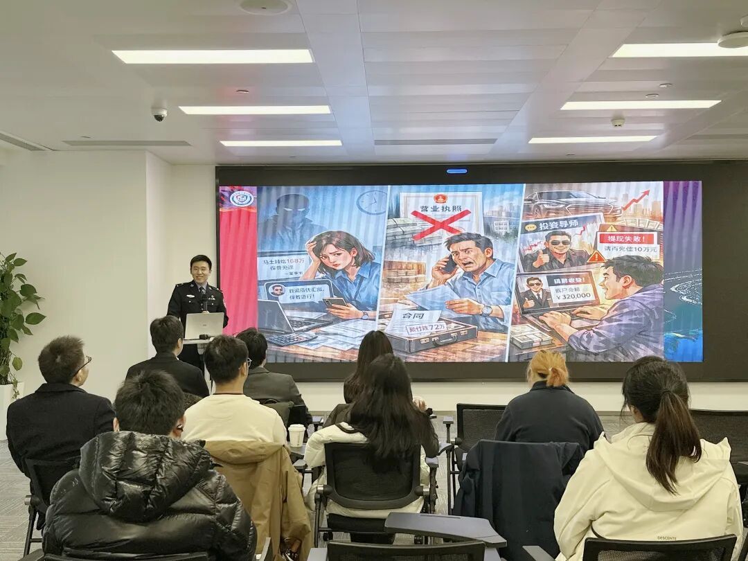 此外,漕河泾派出所警官于鹏飞聚焦企业反诈风险防范开展专业宣讲。针对对公账户诈骗、合同诈骗、网络诈骗等企业经营中的高发诈骗场景,警官通过真实案例剖析、关键风险点提示、实用防范技巧讲解等方式,让企业及员工清晰掌握诈骗防范要点,进一步提升全员反诈意识与风险防范能力,为企业财产安全筑牢防护墙。