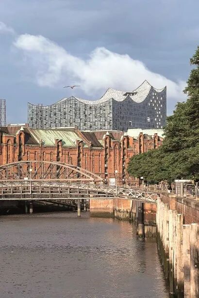 汉堡作为德国北部的港口城市,其“第一立面”是易北河畔的仓库城红砖建筑群,这片建筑群始建于19世纪末,是汉堡历史港口的门面。它以红砖哥特式风格为主,规模宏大、风格独特,2015年入选联合国教科文组织《世界遗产名录》,是汉堡城市形象的核心符号。而其“第二立面”,则是仓库城后方的港口新城,这片区域曾是废弃的港口与工业用地,遍布着废弃的仓库、码头设施,建筑破败、环境脏乱,与仓库城的历史风貌形成鲜明对比,是汉堡城市更新的重点区域。