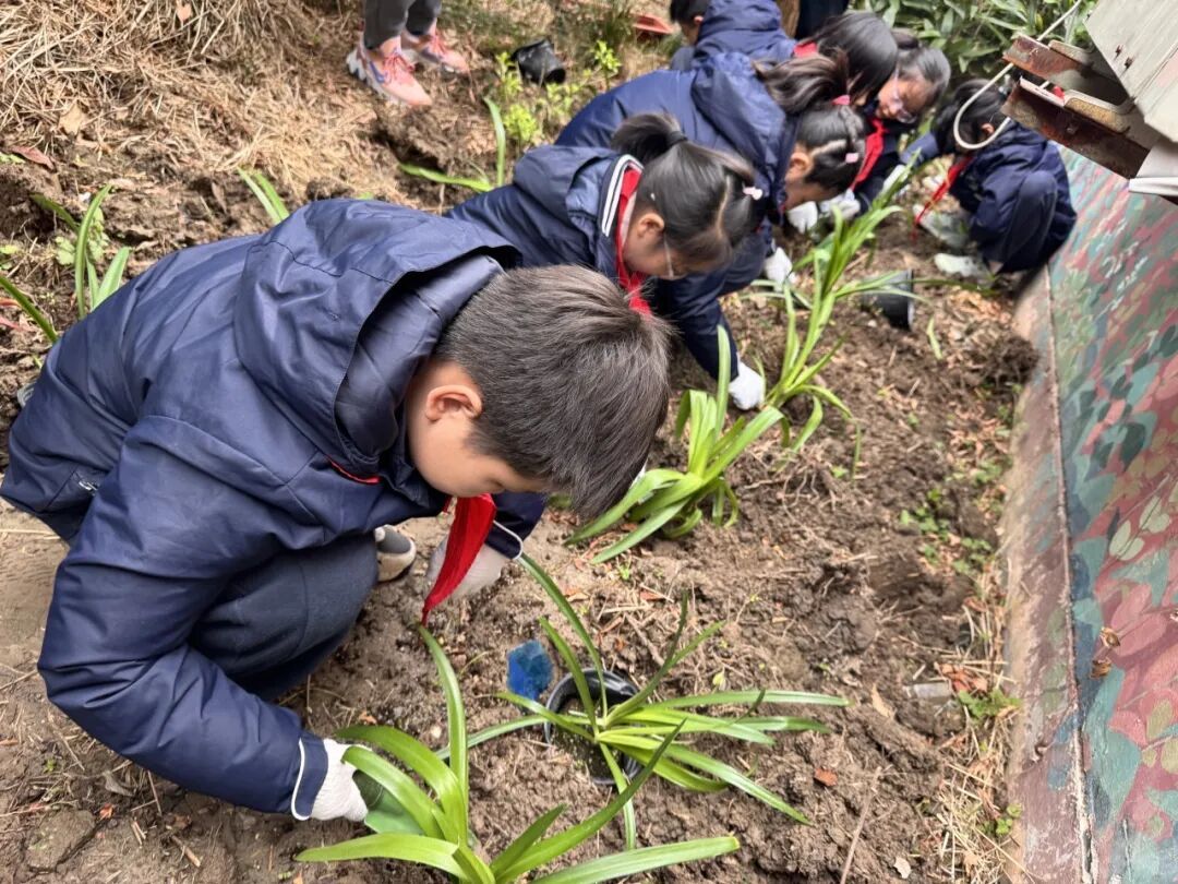 经过一番忙碌,原本裸露的土地上挺立起一株株新绿,为生境花园增添了勃勃生机,也见证了孩子们用双手践行植绿使命的责任与担当。