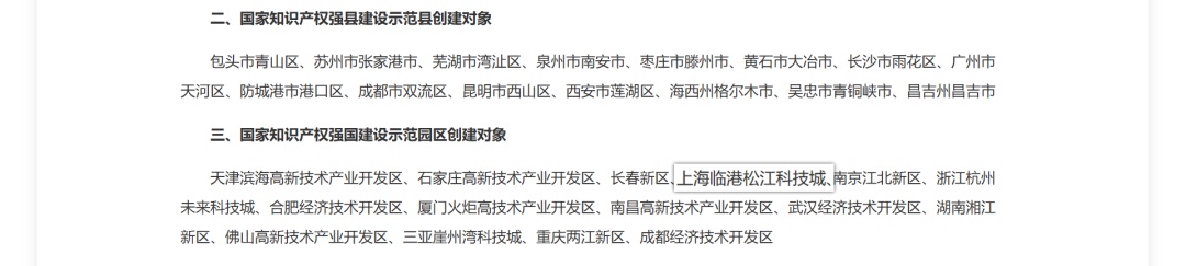 记者从区市场监管局(知识产权局)获悉,我区深入推进国家知识产权强市建设示范城区建设再添硕果,国家知识产权局近日公布2025—2027年国家知识产权强国建设示范创建对象名单,上海临港松江科技城成功入选,成为上海市第二家获评该项国家级荣誉的园区。