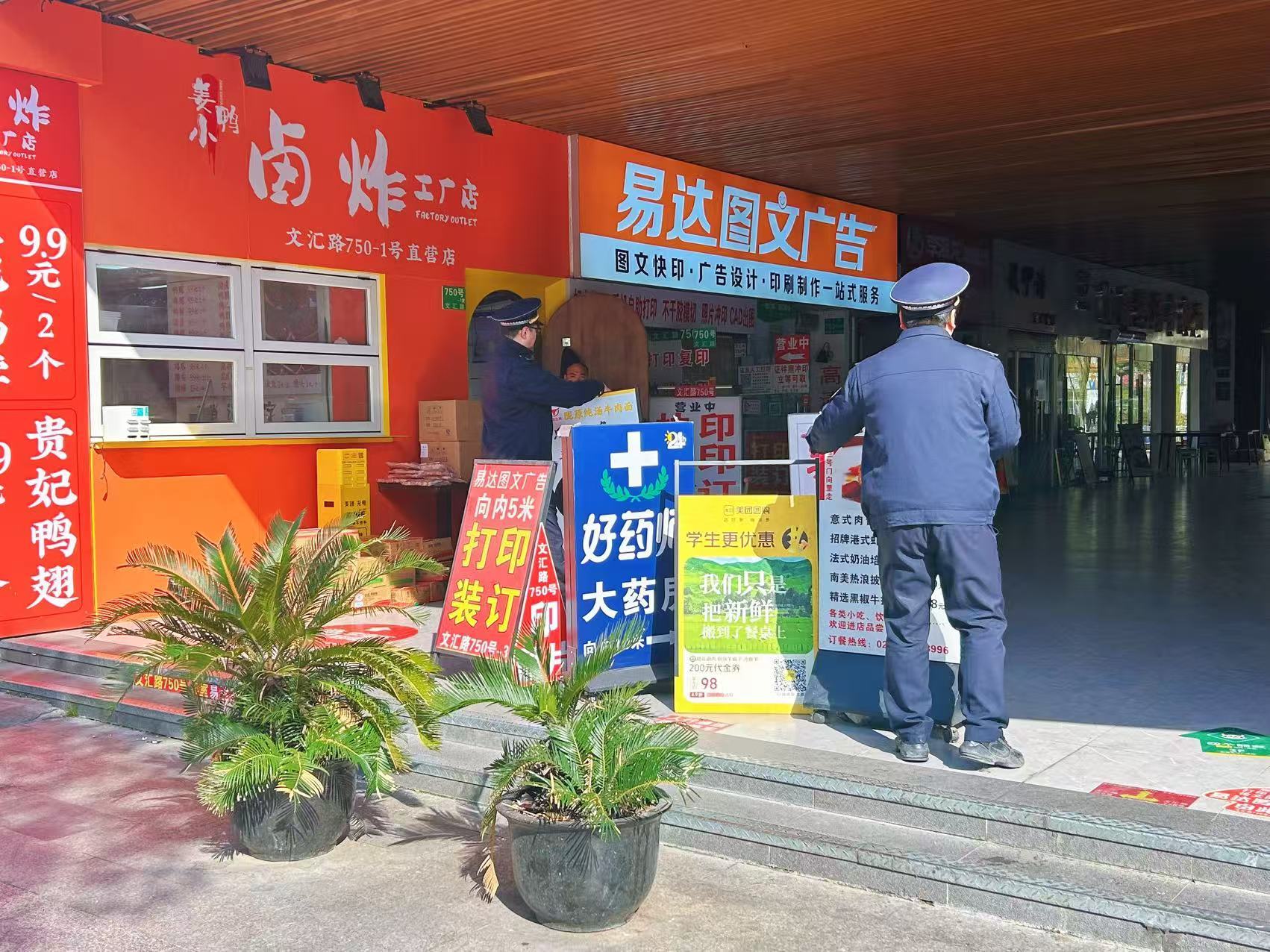 针对文汇路沿线商铺较多、乱张贴小广告、违规设置广告牌等突出问题,执法队联合文汇路管理站、物业等部门,提前走访宣传、督促自行整改,集中拆除一批违规破损广告牌。同时加大巡查频次,做到发现一处、处置一处。仅9日上午,就清理小广告10余处,整改多起违规广告设置行为。