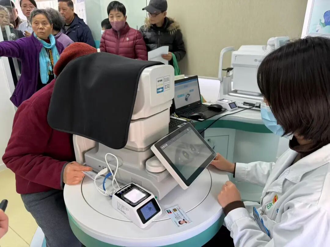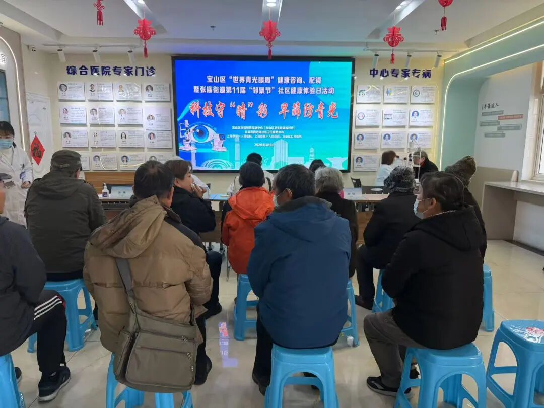 近日,宝山区开展“世界青光眼周”主题宣传活动。在张庙街道泗塘社区卫生服务中心的视觉健康智能管理中心,居民们接受视力、眼压、眼底、裂隙灯等检查服务,并现场听取眼科专家的报告解读和防治建议。