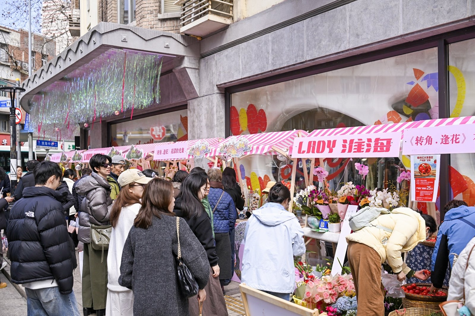 与此同时,项目着力打造城市浪漫美学生活场景,推出两大沉浸式“转角”主题空间:沿淮海路雁荡路侧的《转角・逢花》花漾拾光集,依托法式建筑风格,营造“建筑与鲜花共舞”的视觉亮点,并开展限时花市活动;沿雁荡路兴安路侧的《转角・赏乐》沉浸式音乐会,则邀请上海音乐学院师生现场引吭高歌。活动同步搭配花市、镭射飘带光影廊道等互动体验,构建多层次、多感官的美学场域。