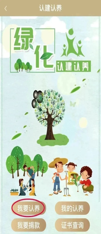进入绿化认建认养页面以后,只要点击“我要认养”,便可以查看到全市可供认养的绿化信息。