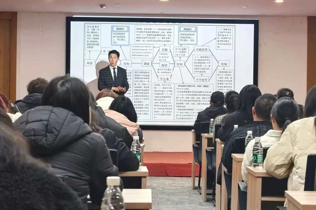 活动现场设置互动交流环节,企业代表结合自身经营实际,就用工管理、争议处理、举报应对等问题踊跃提问,盛琬刚律师逐一细致解答,提供个性化合规建议。现场气氛热烈,企业代表们听得专注、问得积极,不时举起手机拍摄PPT上的干货内容,纷纷表示课程接地气、很受用。