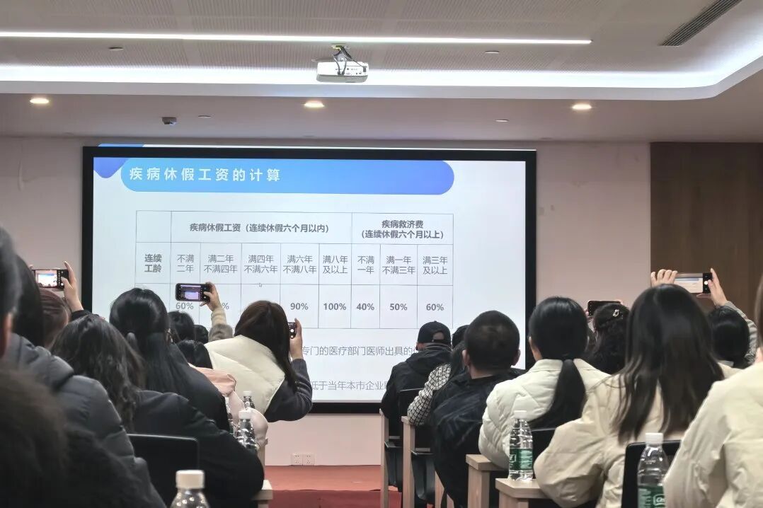 李时香老师采用政策解读+真实案例剖析的方式,如劳动法试用期相关规定与案例“违法约定试用期的赔偿金”、劳动关系的认定与案例“直播新业态劳动关系”相结合,从劳动关系建立、工时制度及社保缴纳、劳动报酬相关规定、劳动合同解除与终止四大维度,生动直观地解读了劳动合同签订、薪酬支付、社保缴纳、工时管理、规章制度制定等关键环节的法律要求,为企业划清用工合规的“红线”与“底线”。
