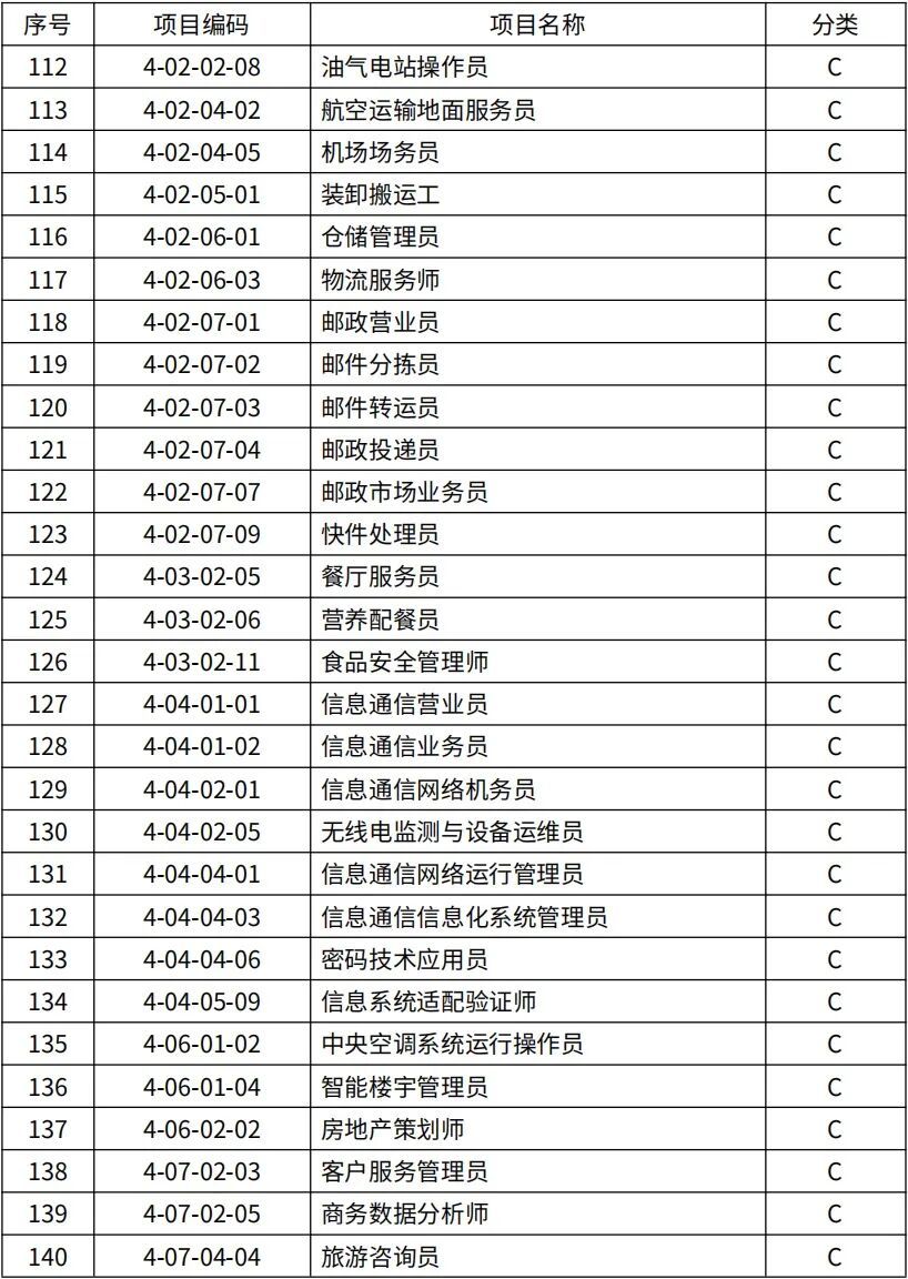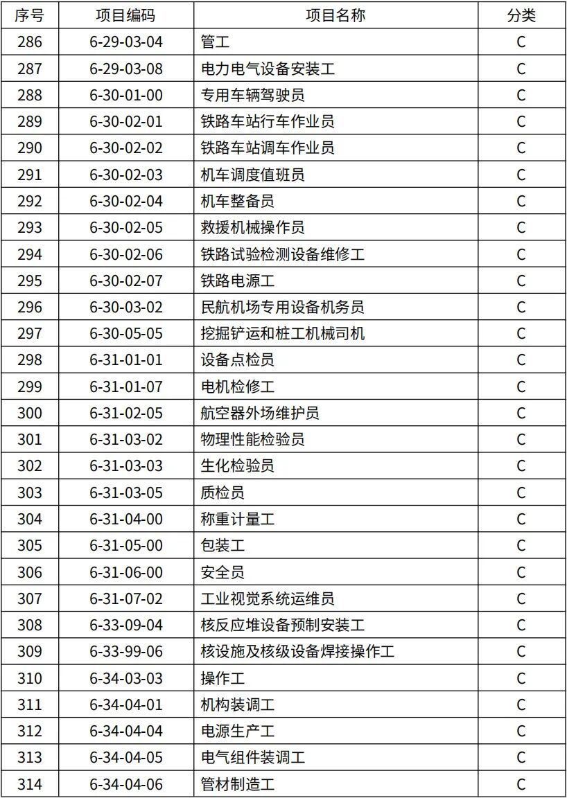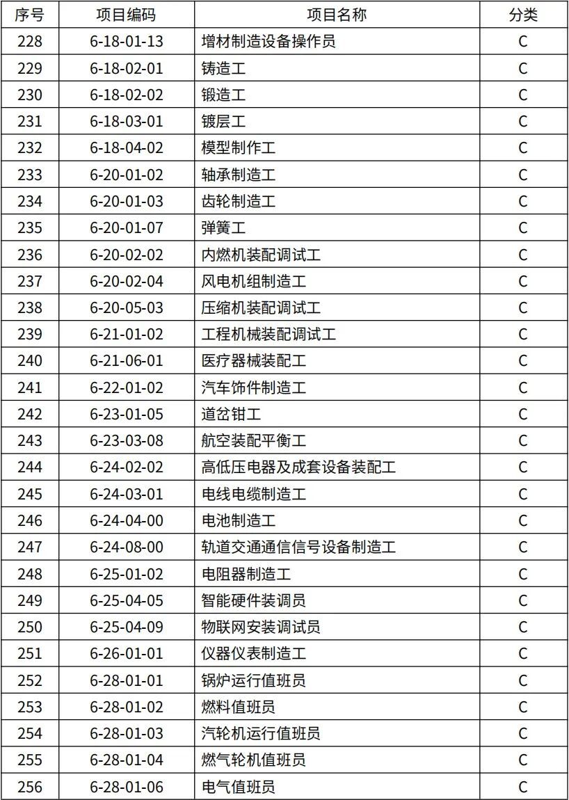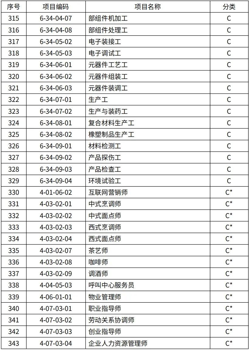 其它补贴项目(C类)初级工(五级)、中级工(四级)补贴标准为800元/人,高级工(三级)、技师(二级)、高级技师(一级)补贴标准为1500元/人,不区分等级的职业资格和专项职业能力证书补贴标准为500元/人。