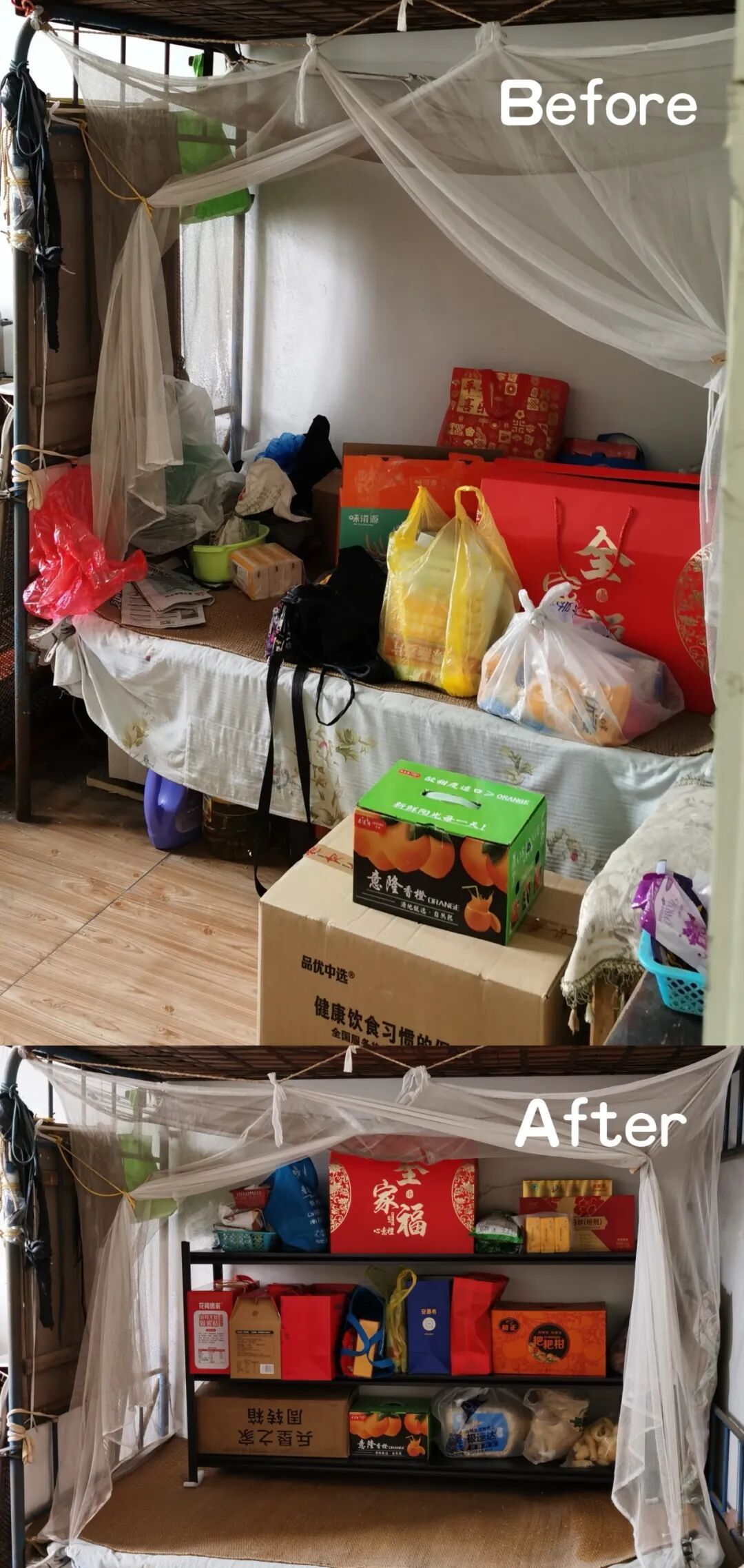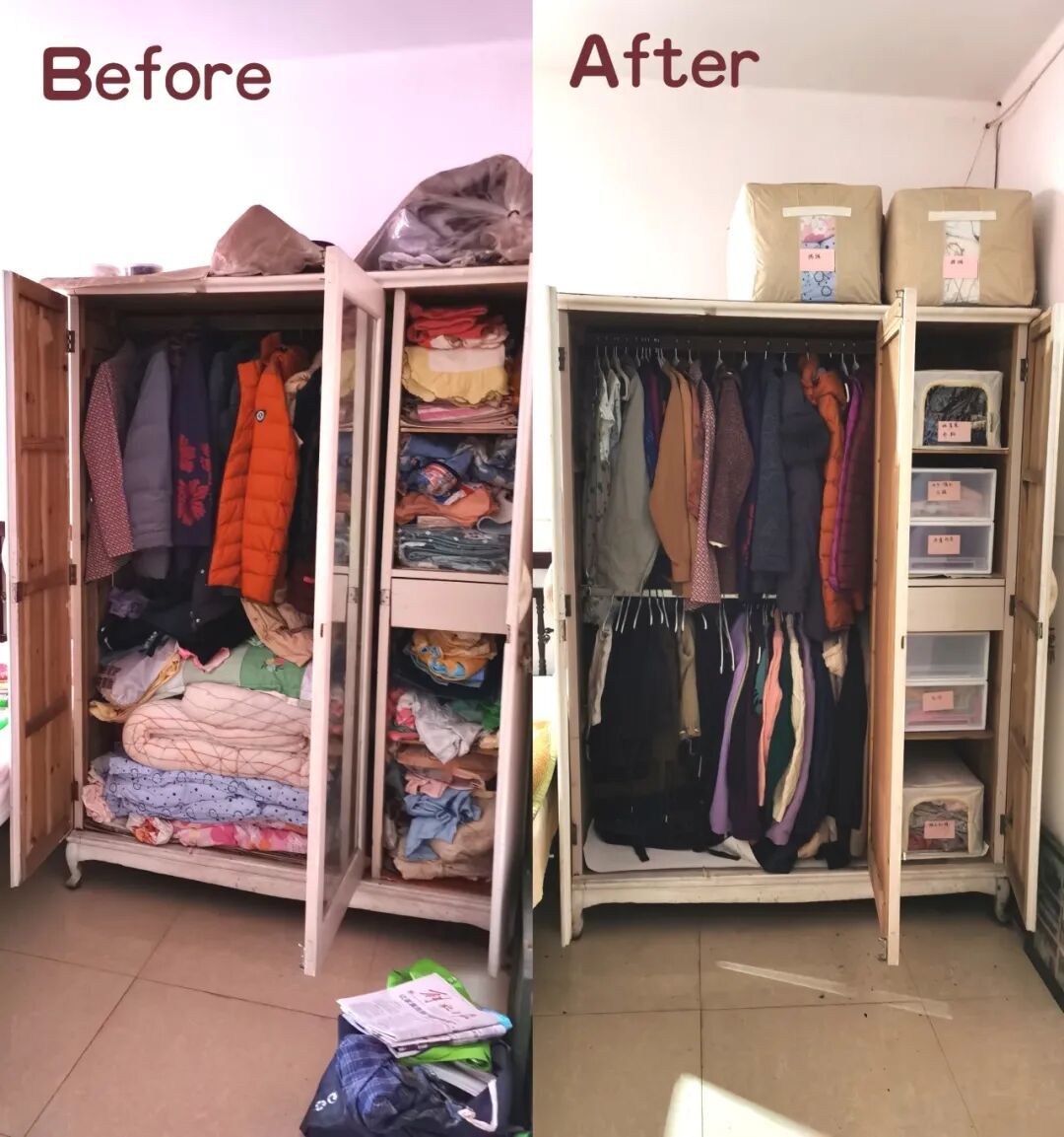 几小时下来,屋子渐渐明朗。常用物品放在触手可及的地方,老照片单独收好贴上标签,通道变得宽敞安全。
