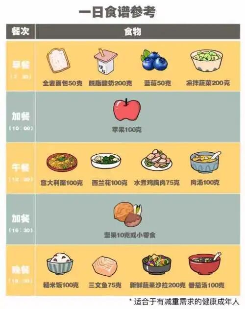 遵循《中国学龄儿童膳食指南(2022)》,每日食物应包括谷薯类、蔬菜水果、鱼禽肉蛋奶、大豆及坚果等。不提倡“这也不吃、那也不吃”,而是应营养均衡,适当控制总热量。例如,在目标能量摄入基础上每日减少500~1000千卡热量,并保持碳水化合物、脂肪、蛋白质的合理比例。