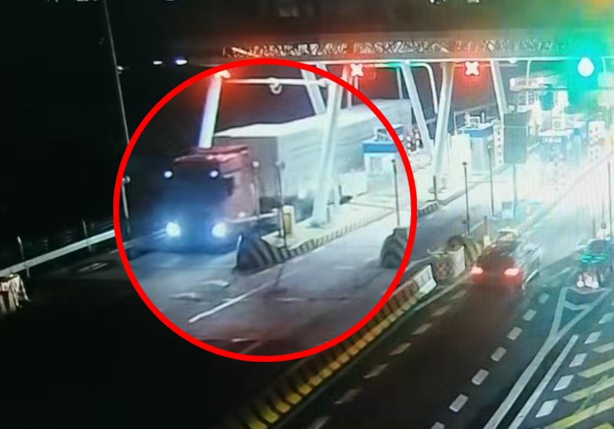2月27日22时34分许,松江警方接到报警:在G15沈海高速外圈车亭公路收费站,一辆重型半挂车强行闯卡驶上高速公路。接到报警后,松江公安分局交管支队民警在该车行驶方向的多个路段布卡,最终在下一个收费站成功将肇事车辆截停。