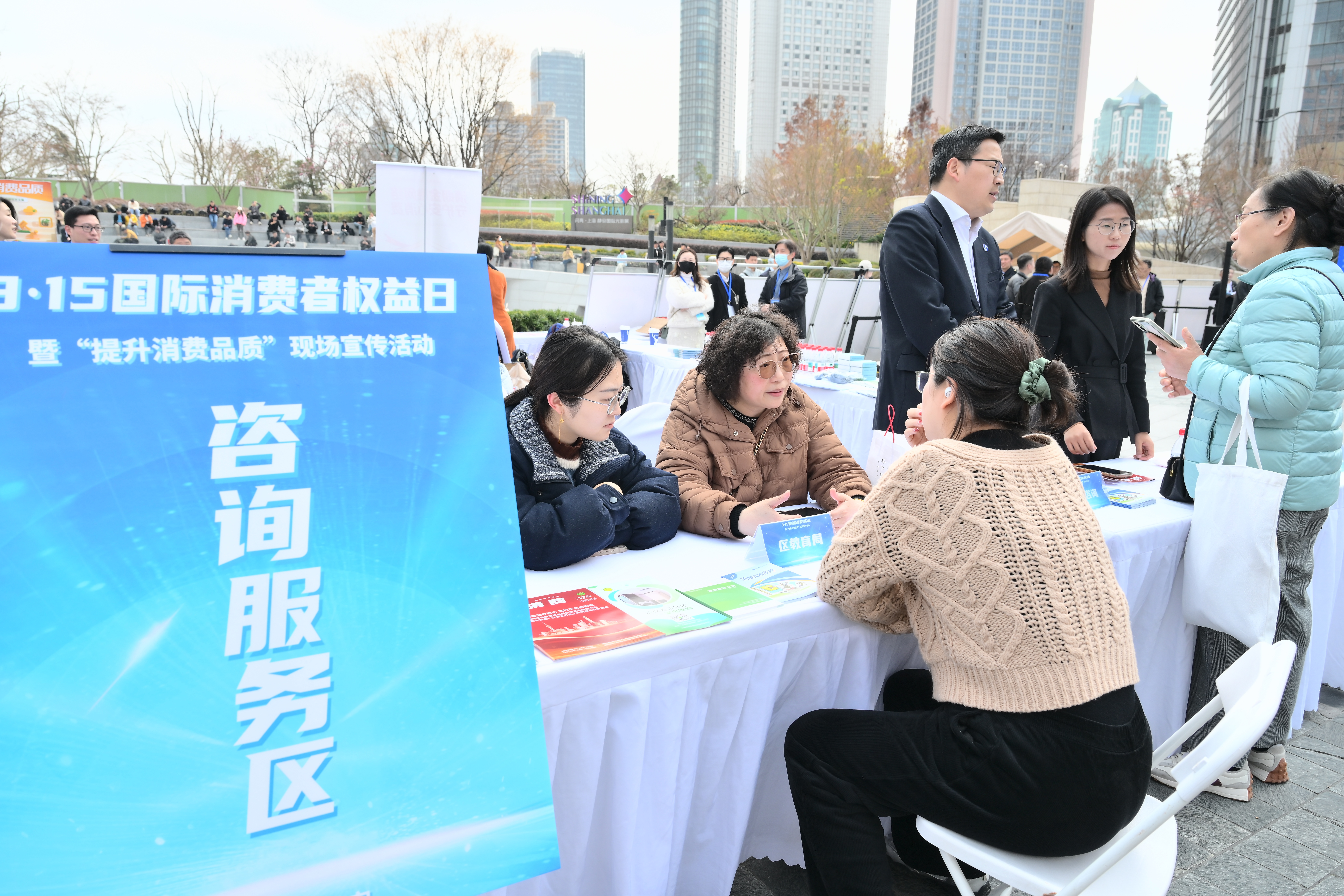 3月14日—15日,由上海市市场监管局、静安区市场监管局、静安区消保委联合举办的“3·15国际消费者权益日”大型现场宣传活动,在丰盛里·静安寺广场正式举行。活动紧扣中消协“提升消费品质”年主题,以“好产品、好选择、好保障”为倡议,为市民打造集政策发布、服务体验、维权科普于一体的消费宣传盛宴。