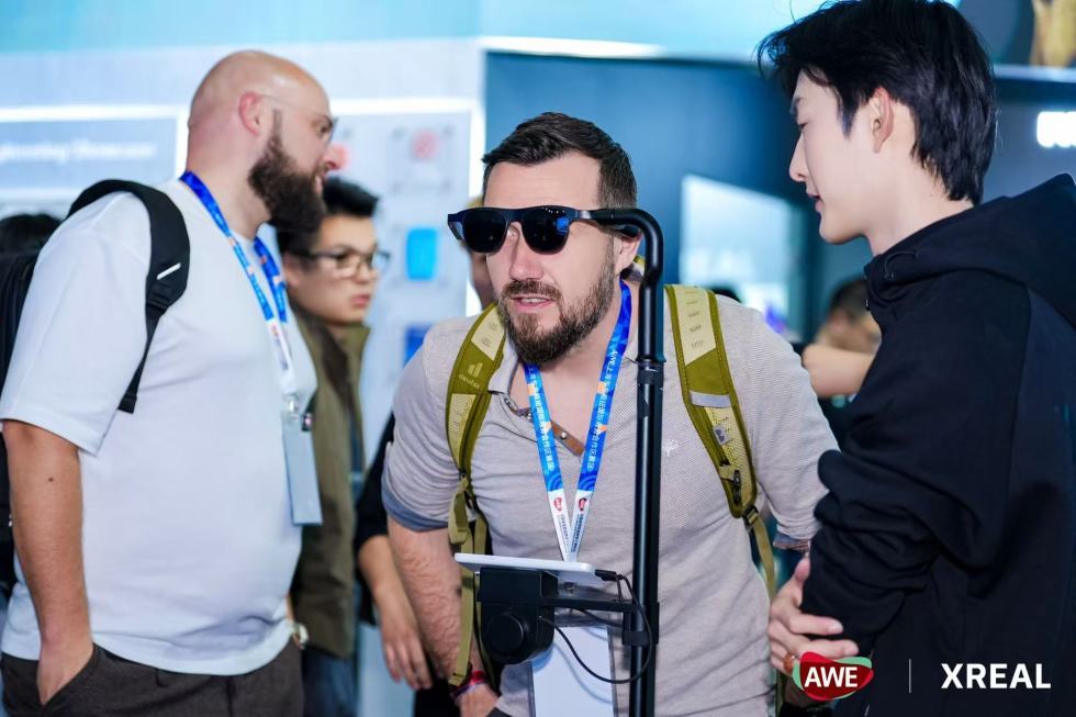 在本届AWE现场,XREAL主展品XREAL 1S为本次展会十大新品之一,同时也荣获“艾普兰创新奖”。该产品可实现等效至高500英寸的空间巨幕体验,直连设备即可开启“超宽屏模式”。XREAL现场展示了原生实时2D转3D及原生3DoF体验,从底层逻辑上解决了AR行业长期面临的内容匮乏与外设限制。