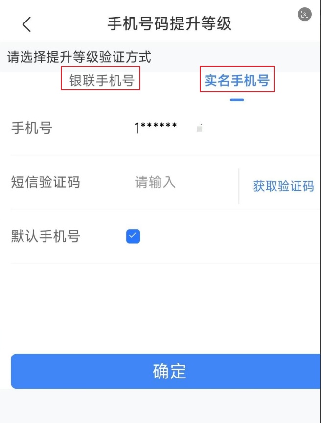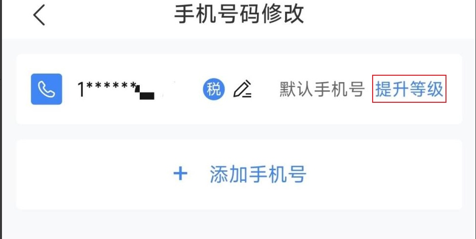 登录电子税务局App端,打开【账户中心】,进入【个人信息管理】-【手机号】模块,点击该手机号右侧的【提升等级】按钮,然后选择【银联手机号】或【实名手机号】进行验证。