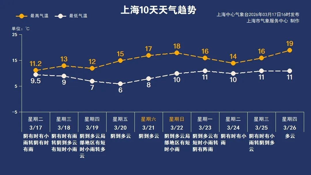 周日至下周初雨水重返申城,其中下周一前后雨势相对明显,气温起伏不大,整体在10~18℃。天气乍暖还寒,外加雨水的“打压”下,提醒大家需适当春捂。