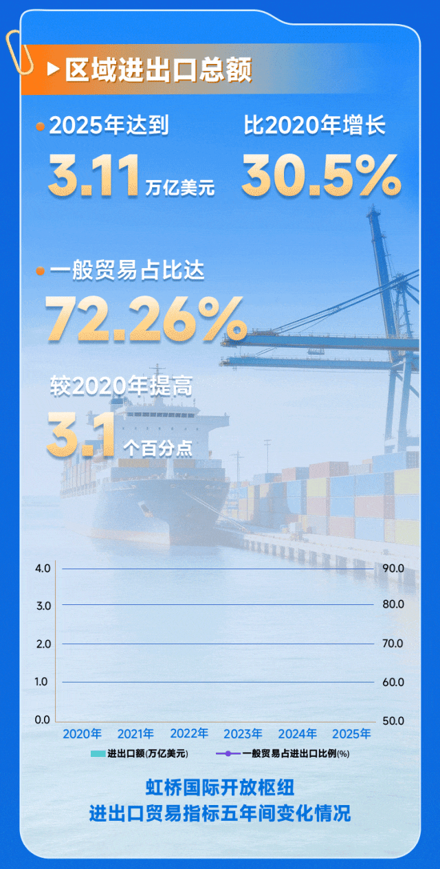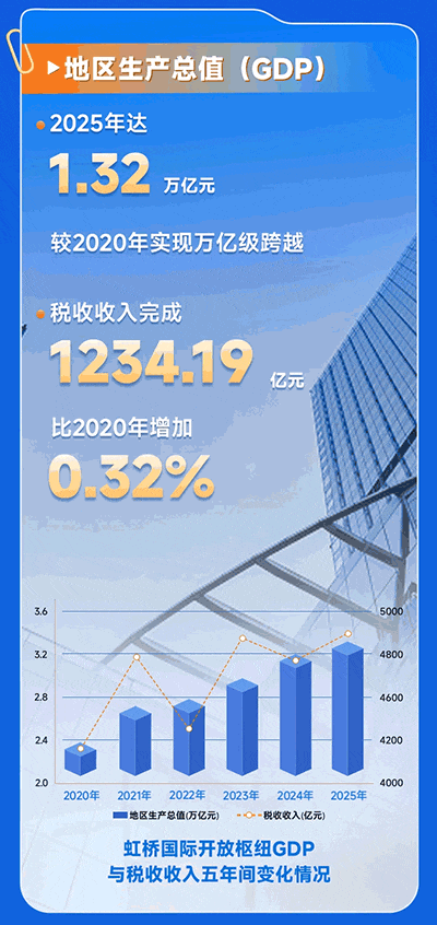 2021年2月,国务院正式批复《虹桥国际开放枢纽建设总体方案》。五年来,虹桥国际开放枢纽紧扣“一核两带”功能布局,系统推进制度型开放、功能平台提质与区域协同创新,交出了一份亮眼的成绩单: