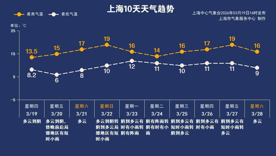 周六是本周最为“阳光”的一天。积攒的衣物抓紧洗晒,也很适合大家外出踏青赏花。周日白天云系略多一些,多云到阴为主,傍晚以后局部会飘些短时小雨,对出行影响不大。双休日最高气温可以达到17—19℃,白天暖意融融,早晚最低气温在8—10℃,还是有早春的凉意。
