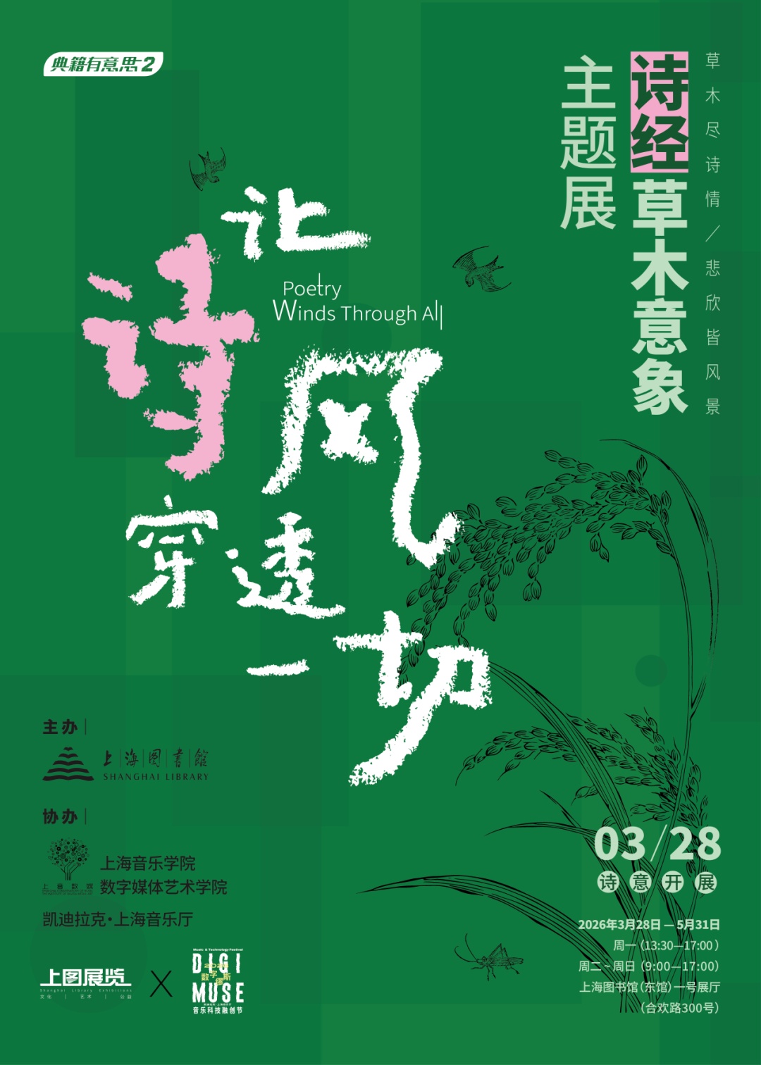 2026年3月28日,“典籍有意思”系列展第二辑——“让诗风穿透一切”《诗经》草木意象主题展,将于上海图书馆东馆一号展厅启幕。