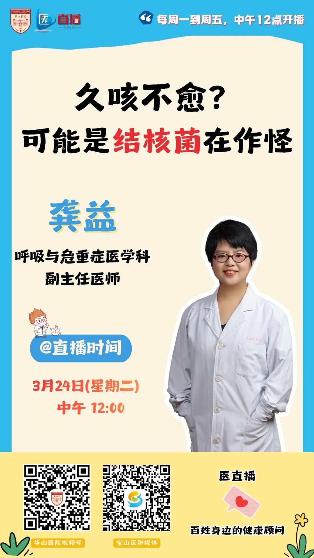 2026年3月24日是第31个“世界防治结核病日”。本期医直播,复旦大学附属华山医院呼吸与危重症医学科副主任医师龚益,将和大家一起聊聊结核病的防护要点,帮助公众科学认识这一可防可治的呼吸道传染病。